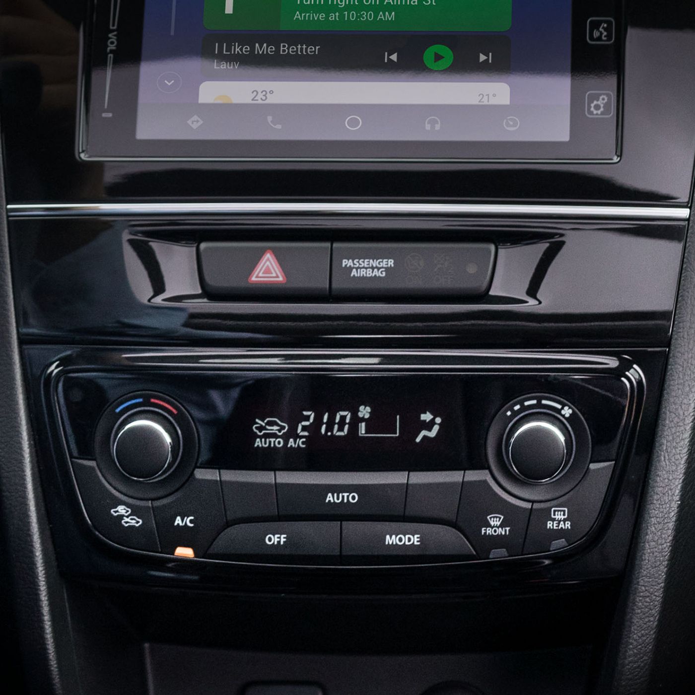 Med den inbyggda Suzuki Display Audio och en 9 tums HD-pekskärm får du mer kontroll över din resa. Bland annat ingår FM/AM-radio, DAB-radio och ett navigationssystem som standard. Dessutom kan du enkelt och smidigt spegla din smartphone till skärmen.